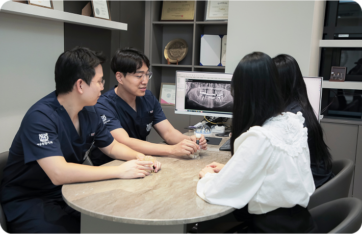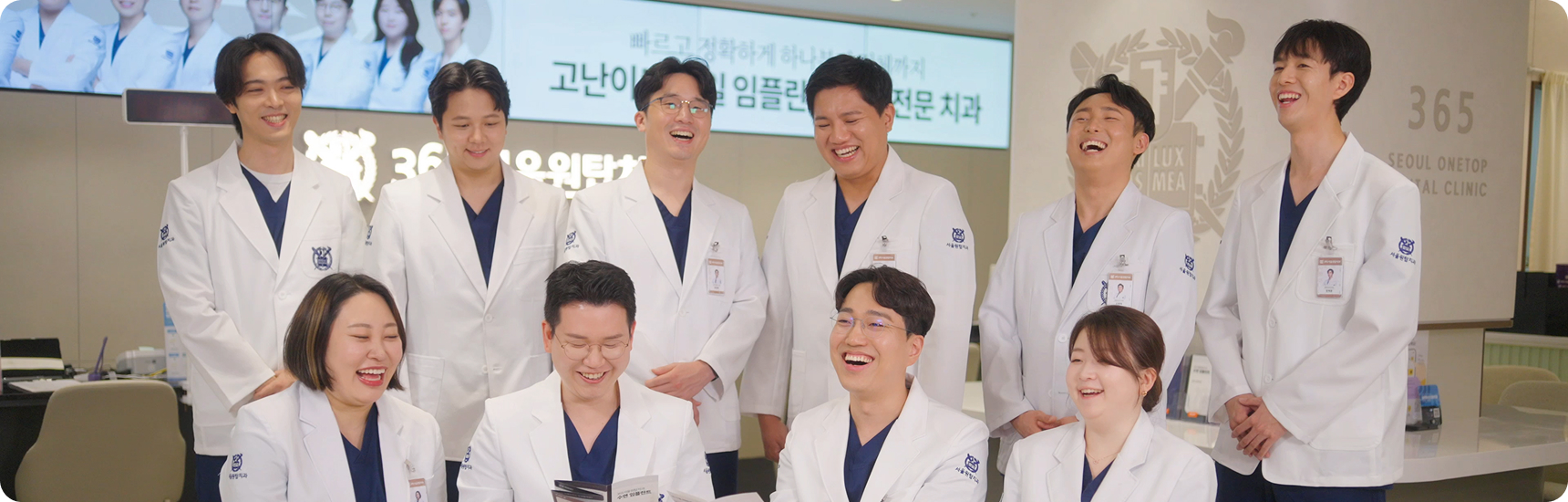 365서울원탑치과는 정확한 진단과 안전한 치료를 위해 분과별 의료진 공동진료 시스템으로 운영되고 있습니다.